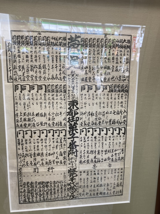 店頭に飾られている「東都御菓子番附」(1940年発行)